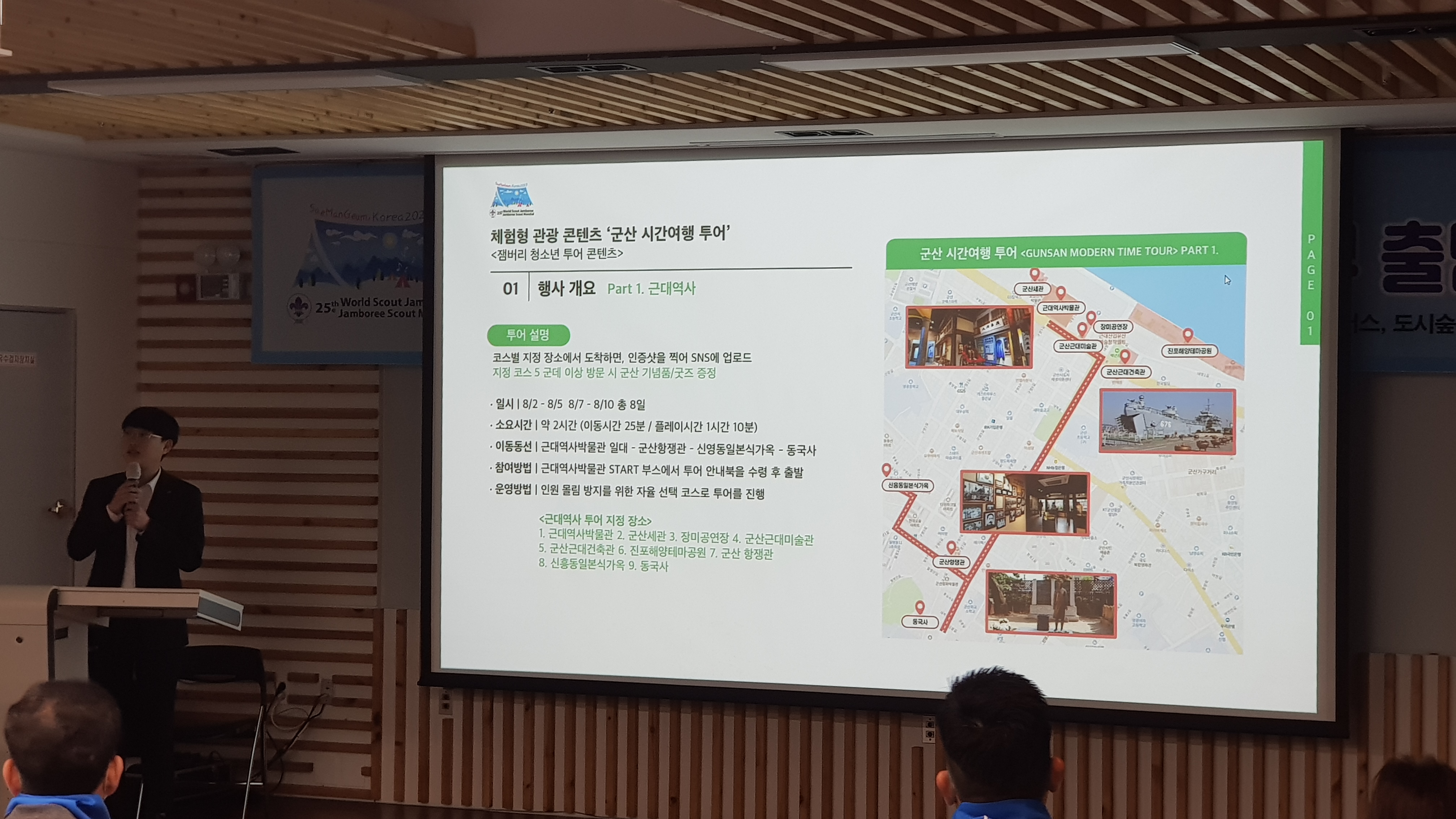 새만금 스카우트잼버리 조직위원회의 부장님께서 프로그램의 전반적인 부분과 군산에서는 어떠한 행사들이 잼버리기간에 진행되는지 설명해주셨습니다.