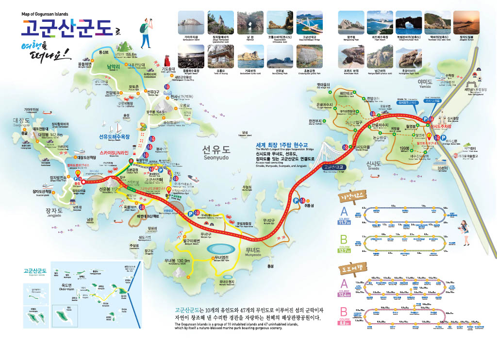 This is the Map of Go Gunsan Islans, Five islands are connected by a bridge.
